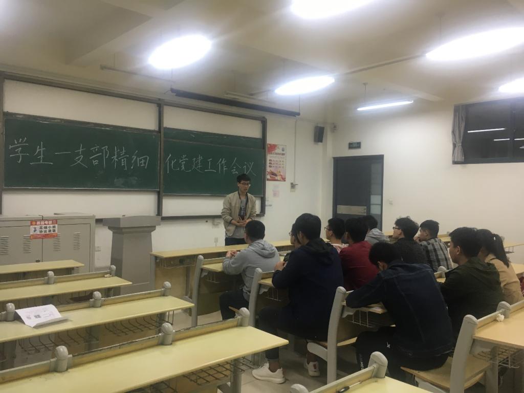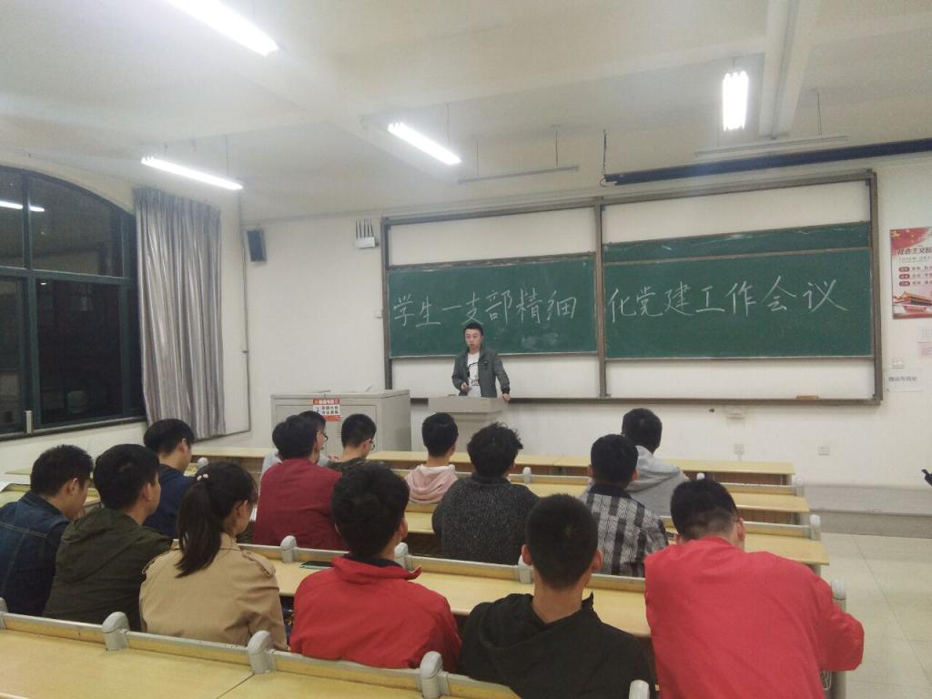 10月26日晚,hth华体育官网学生第一支部党建工作专题会议在嘉陵江路校区主教学楼B227召开,会议由支部宣传委员邢伟主持,支部学生党员参加此次会议。