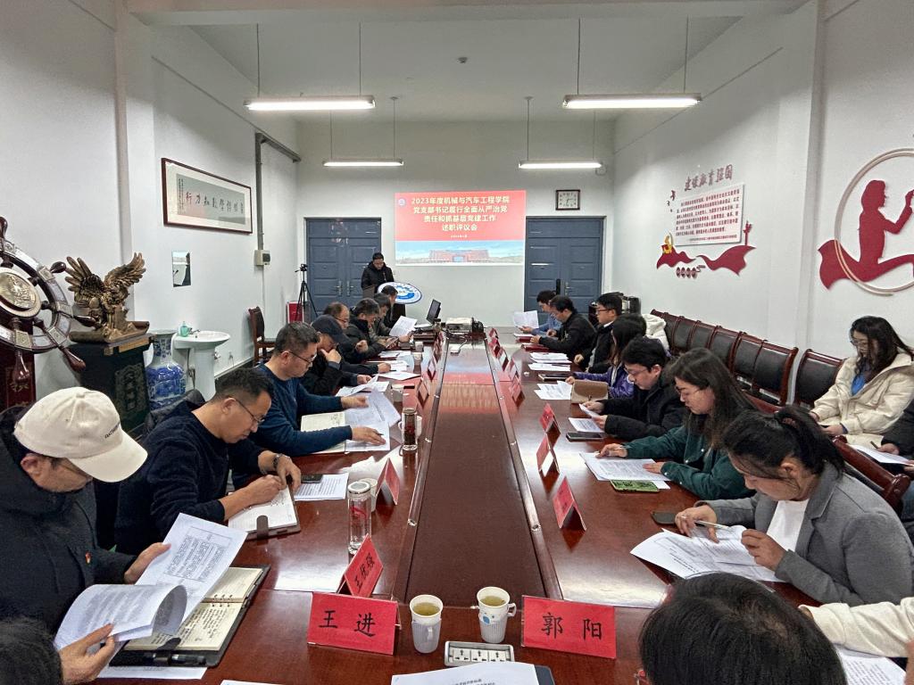 为深入学习贯彻习近平新时代中国特色社会主义思想,进一步推进全面从严治党向基层延伸,切实提高基层党建水平和质量,hth华体育官网党委于1月10日下午在汽车实验楼408会议室召开2023年度党支部书记履行全面从严治党主体责任和抓基层党建工作述职评议会,党委常委、副校长李长河,组织部组织员办公室副主任东忠方列席会议,学院班子成员、党支部书记参加会议。学院党委副书记董虎主持会议。