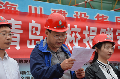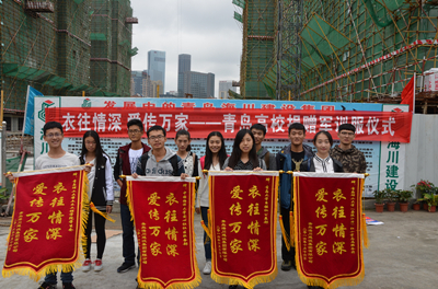 2016年10月16日下午,由hth华体育官网、青岛大学和中国海洋大学共同参加的“衣往情深,爱传万家”军训服装捐赠仪式,在青岛海川建设镇江路项目工地顺利举行。青岛海川建设集团副总裁李尊强、团委书记王群、所在项目部工人代表以及hth华体育官网黄岛校区红十字志愿服务团团长郭迎雪、市北校区土木学院学生代表刘贞涛和另外两所高校学生代表参加了此次军训服捐赠仪式。
