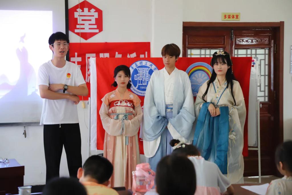 支教队依托当地丰富的历史与文化资源,以“传承文明礼仪,弘扬传统文化”为支教主题,系统设计了优秀传统文化宣传教育、传统文化线下体验、传统文化经典著作诵读等系列课程,将弘扬优秀传统文化贯穿暑期支教的始终,希望能够让文化自信的种子在孩子们幼小的心灵中生根发芽。同时结合防溺水、防拐骗系列讲座,有效增强孩子们的安全防范意识,增强自救本领。