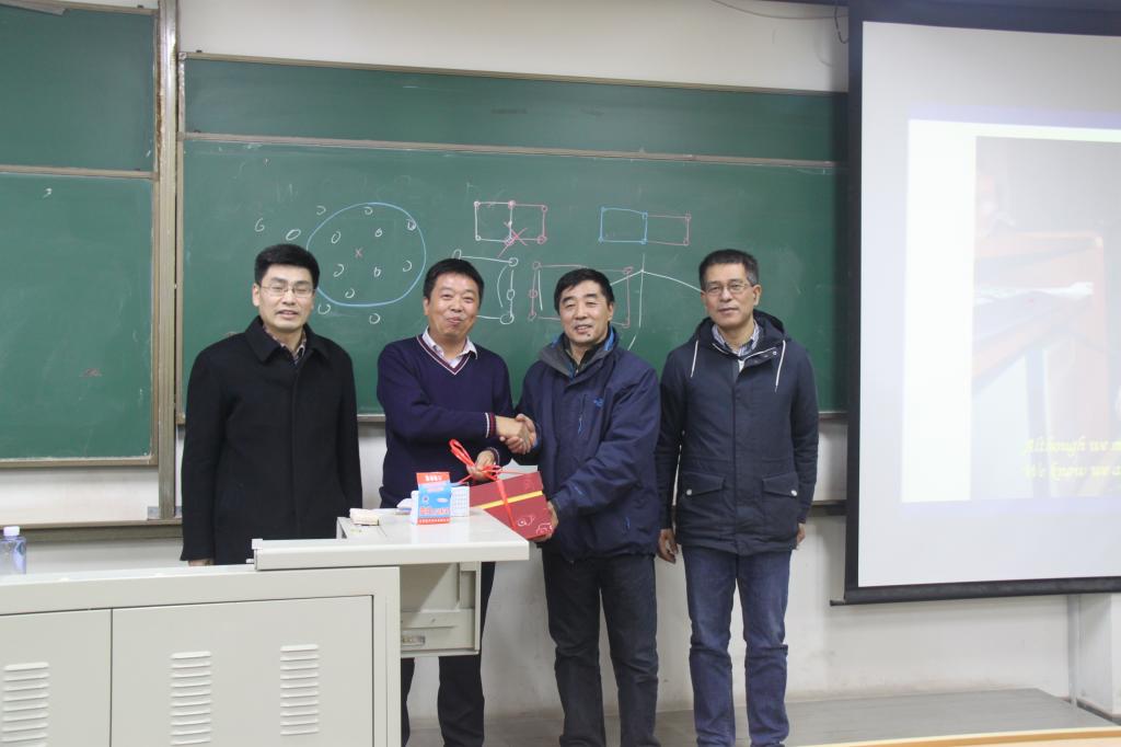 报告结束后,谭继文代表师生向顾元通教授赠送礼物,并代表学院感谢顾教授对机械学院学科建设和人才培养工作的大力支持。