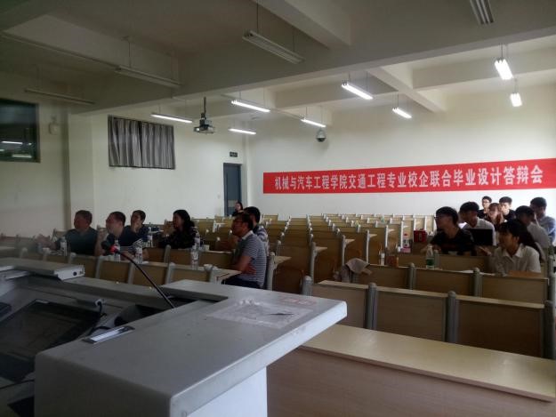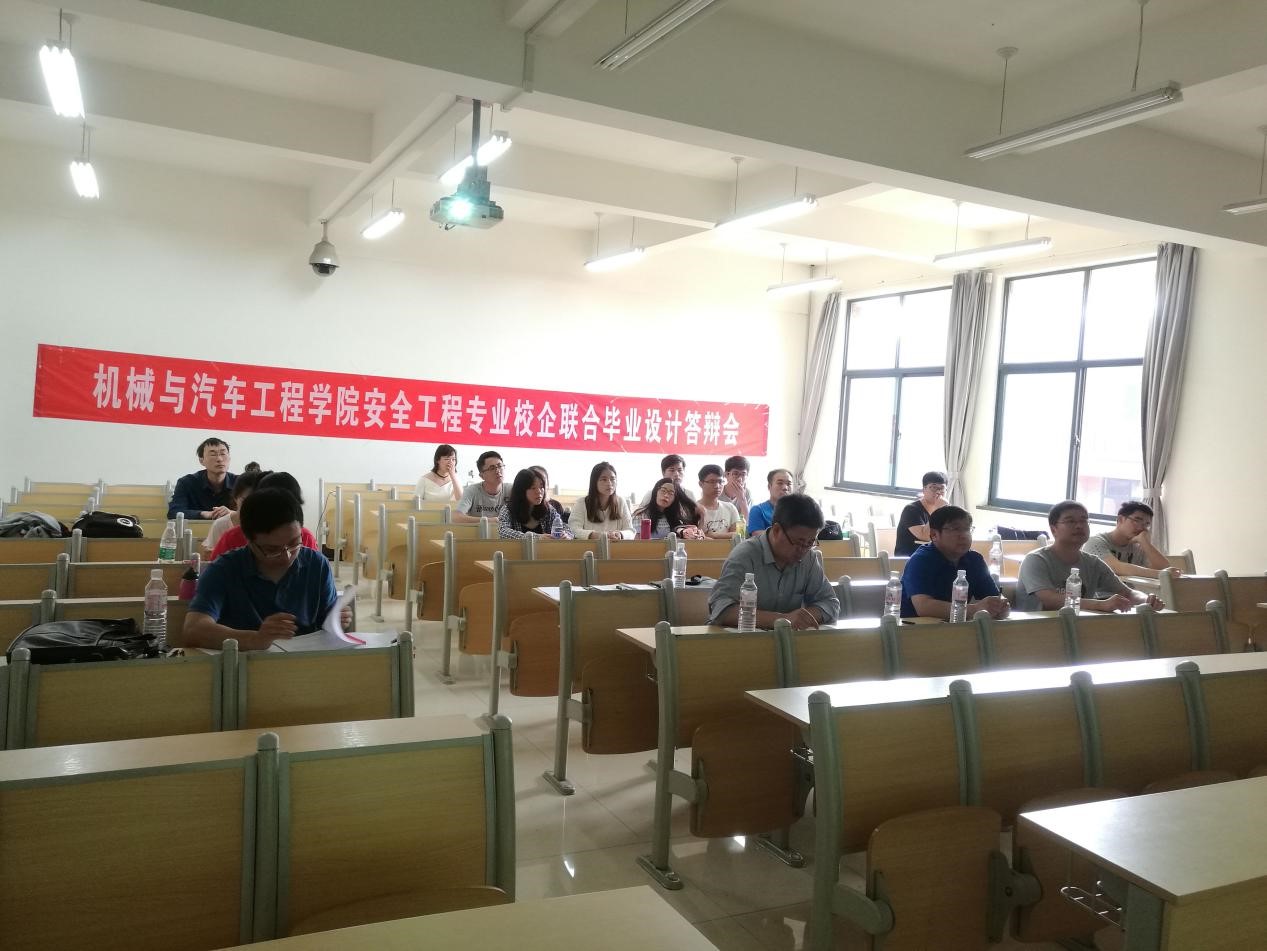 2018年6月15日,hth华体育官网举行校企联合毕业设计答辩会。答辩委员会由校内教师和企业专家组成,企业专家包括来自中国石油集团海洋工程(青岛)有限公司、山东豪迈机械科技股份有限公司、山东欧泰隆重工有限公司、山东云内动力有限责任公司、山起重型机械股份公司、中际旭创股份有限公司、青岛城建集团有限公司、青岛东佳纺机(集团)有限公司、青岛华瑞汽车零部件有限公司、青岛华瑞丰有限公司、青岛茂源停车设备有限公司、青岛万科青岛小镇项目部、青岛金晶股份有限公司、青岛海科佳电子设备制造有限公司、青岛海之冠汽车配件制造有限公司等单位在内的共计16位高级工程师。答辩会涉及的专业包括机械设计制造及其自动化、车辆工程、安全工程和交通工程等4个专业,参与答辩的学生包括了以上4个专业的全体学生。
