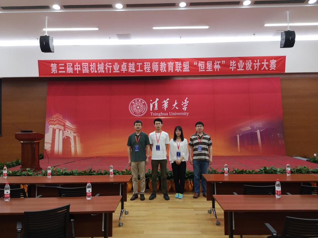 中国机械行业卓越工程师教育联盟“恒星杯”毕业设计大赛由教育部高等教育司组织实施,中国机械工程学会和中国机械行业卓越工程师教育联盟共同主办,是中国机械类专业最权威的竞赛活动之一。大赛共征集来自清华大学、上海交通大学、大连理工大学、青岛理工等64所高校和企业的717项题目,经过专家评审共选出171项作品进入决赛。在5月25日的决赛中,hth华体育官网参赛学生思路清晰、思维严谨,完整表述自己的作品,沉着应对评委老师的提问,为评委老师留下了深刻的印象。