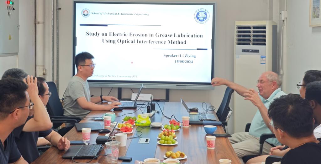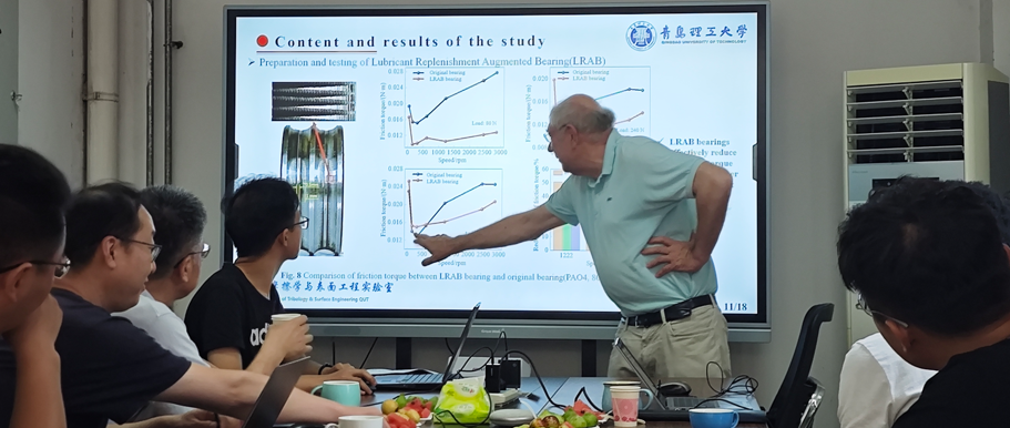 报告会上,郭峰对高德·珀尔教授一行的来访表示热烈欢迎,高度评价了他的学术成就,并向高德·珀尔教授介绍了hth华体育官网基本情况和摩擦学与表面工程实验室的发展概况。高德·珀尔教授对学院的热情接待表示感谢,随后,结合风电大型轴系中滚动接触与平行滑动的发展现状进行了专题报告,系统介绍了国际轴承企业“以滑代滚”的典型应用方法,重点阐述了从小轴系到大轴系的接触与润滑中亟需突破的难点问题。报告会激发了与会师生的浓烈兴趣,提问互动环节气氛十分热烈。