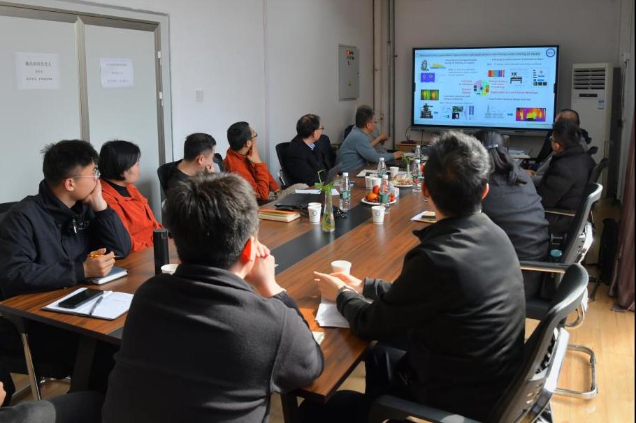 期间,郭峰介绍了学院和实验室的发展情况,重点介绍了实验室在滚动轴承基础研究和工业应用方面取得的进展。实验室副主任栗心明教授向舍弗勒团队专家们介绍了项目合作进展情况、项目在轴承润滑测试技术上取得的突破,以及项目取得的阶段性成果。实验室老师们和舍弗勒专家围绕滚动轴承润滑测试技术、轴承电蚀、润滑数值分析等方面进行了深入的座谈交流。