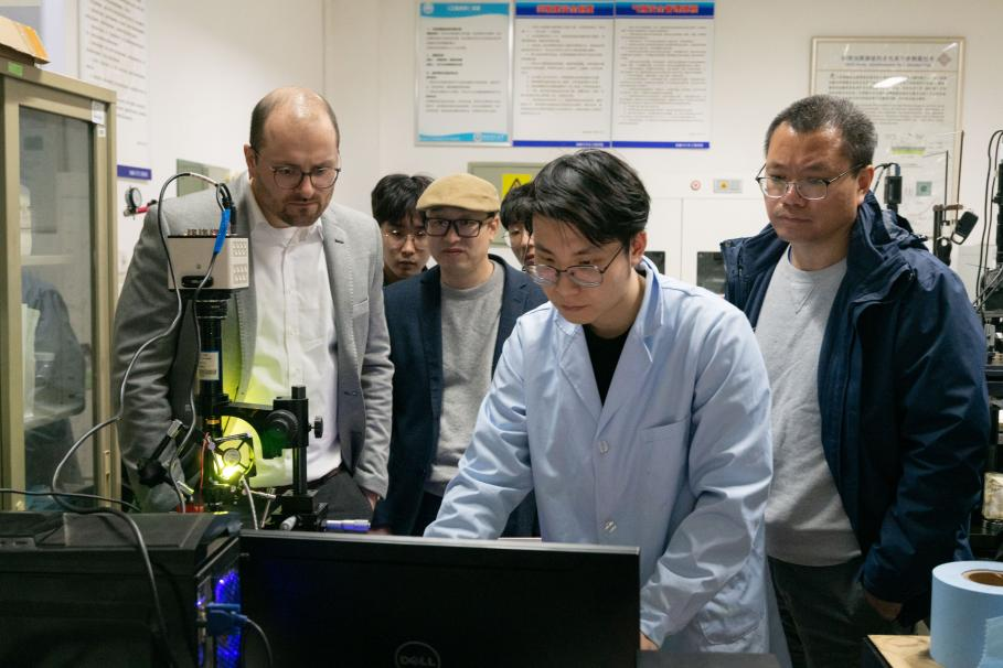 报告后,栗心明带领舍弗勒团队参观了实验室的轴承润滑测量装置。舍弗勒团队对实验室前期合作的项目成果给予了肯定,并对研究所在轴承研究测量方法、仪器研发等方面给予了高度认可。舍弗勒专家团队表示,“舍弗勒公司一直致力于与高等院校开展深度合作,共同推动科技创新和人才培养。他们希望通过这样的交流活动,与hth华体育官网进一步携手合作,在摩擦学领域取得更多的突破和进展。”