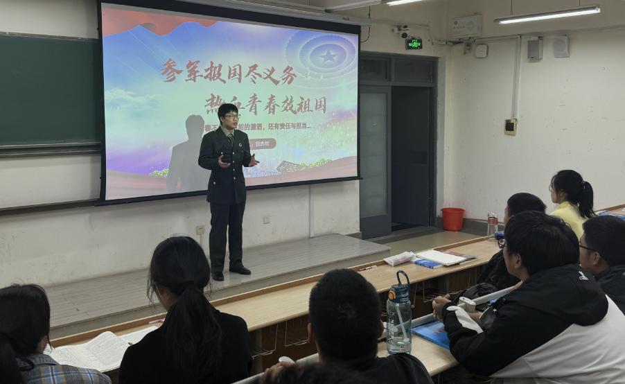 随着夏季征兵的日益临近,为动员和鼓励广大青年学子积极参军入伍,5月24日hth华体育官网在主教学楼B301举办征兵动员宣讲会。宣讲会特别邀请了学院退役士兵田杰然、兰星阳主讲。