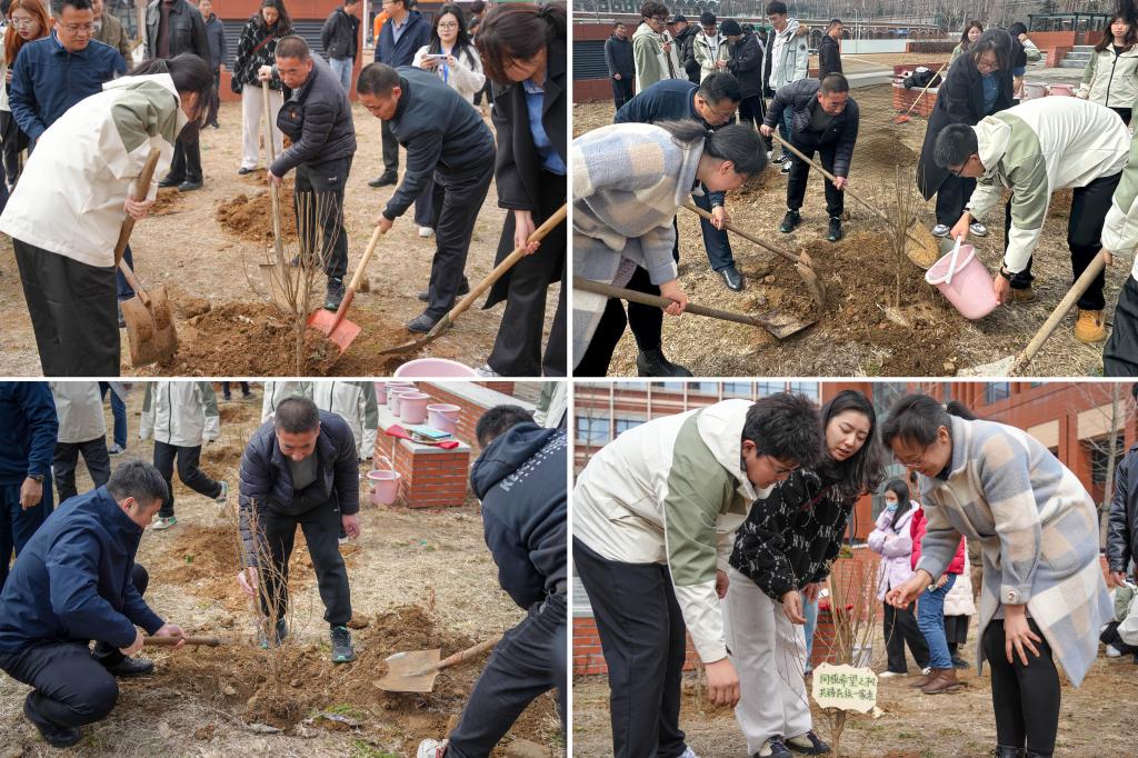 春风吐绿万物新,思政育人正当时。在第47个植树节到来之前,hth华体育官网后勤管理处联合开展“石榴树下,团结同行”植树活动。此次活动以栽种寓意深远的石榴树为载体,旨在传递“根植团结,共筑强国梦”的深刻寓意,让青年学子在劳动中感悟团结的力量,体会中华民族共同体意识的重要性。后勤管理处党总支书记王龙、学校党委统战部副部长杨延生、学生工作处副处长丁于娟、马克思主义学院副院长石峰及hth华体育官网各民族师生代表80余人参加活动。活动由hth华体育官网党委副书记董虎主持。