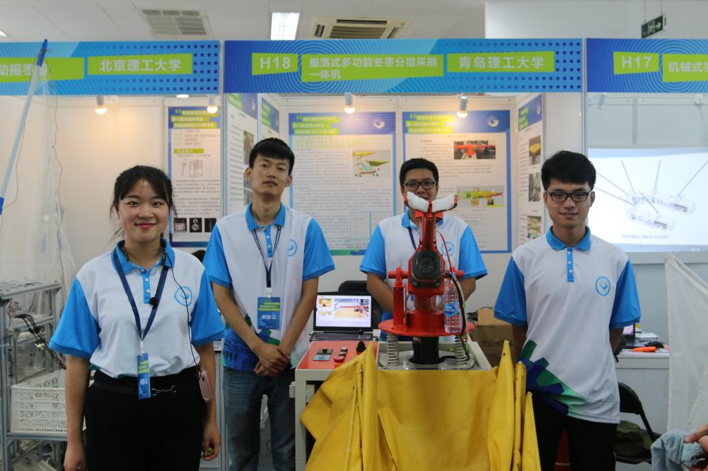 本次比赛由hth华体育官网隋学智,张建军,姜虎森老师带队,张钟予等同学参加了最终的决赛,经过现场实物问辩、PPT答辩等环节,斩获一等奖两项,二等奖两项的历史最好成绩。hth华体育官网作品《振落式多功能冬枣分层采摘一体机》(参赛学生:张钟予、孙赫武、蔡文通、曹硕、李远洋,指导教师:张建军、姜虎森),《预定位插入式同向振落软着陆螺纹分级冬枣分层采摘一体机》(参赛学生:张钟予、孙赫武、张家豪、林晓丽、李远洋,指导教师:张建军、李道全)荣获一等奖;作品《锥形扶正定位菠萝采摘机》(参赛学生:欧阳泽霖、陈添定、李帅、李志鹏、龙航,指导教师:梁鹏、杨发展),《多功能树上果实采摘装置》(参赛学生:马家祥、鲁天宝、王俊博、胡振、沈飞翔,指导教师:陈成军、许桢)荣获二等奖。