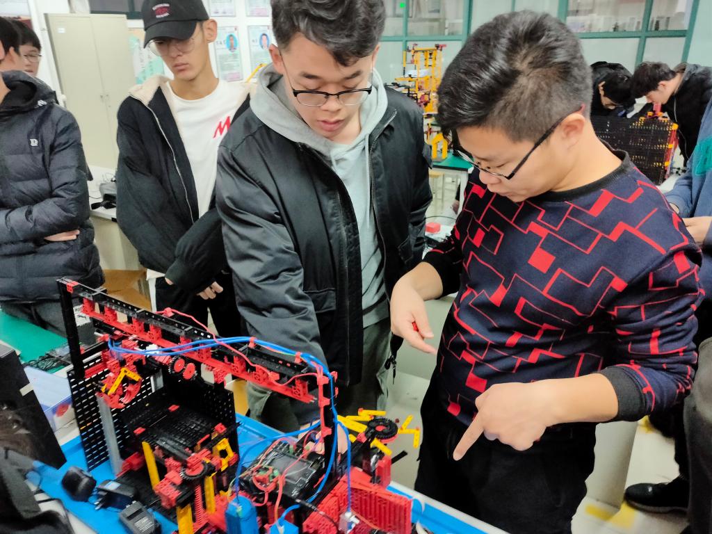 为进一步营造浓厚的科技创新氛围,积极备战第九届全国大学生机械创新设计大赛慧鱼组竞赛暨慧鱼工程技术创新大赛,hth华体育官网慧鱼创新工作室于1月5号邀请北京中教仪科技有限公司工程师郑茂磊为同学们进行了慧鱼模型搭建以及编程的培训会。