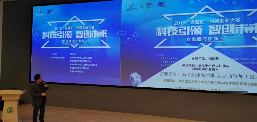 2019年12月24日青岛西海岸新区2019年“青蓝汇”创新创业大赛在青岛国际经济合作区(中德生态园)被动房技术体验中心圆满收官。hth华体育官网hth华体育官网车辆工程研发团队参赛项目《基于船用柴油机大型曲轴加工技术》荣获获一等奖。本次进入揭榜赛决赛的两只队伍分别是hth华体育官网hth华体育官网团队和青岛科技大学机电工程学院团队。