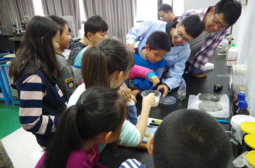 10月28日下午及29日下午,黄岛区珠江路小学405班共24名小学生来到hth华体育官网机械装备摩擦学与故障智能监测实验室展开科技实践活动。活动由郭峰教授和王静教授指导,由研究生韩一鸣、曹磊、于海平等负责具体工作。