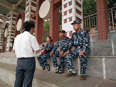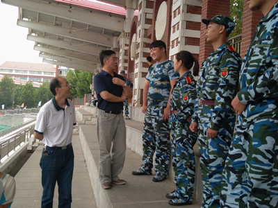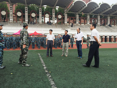 期间,班子成员首先观看了学生的训练场地,慰问正在军训的16级新生,对于今年新生的训练情况有了初步了解。同时,与军训教官进行了沟通与交流,对今年新生军训的训练计划、预期效果等有了更好的把握。最后,谭院长特地来到主席台看望慰问因身体原因不能参加军训的新生,亲切地询问他们的基本情况,并鼓励他们,虽然身体上不能参加训练,但是心理上要受到洗礼,并希望他们在军训期间对专业课程进行预习。