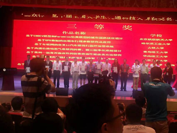 2015年5月24日,“晶众杯”第十届全国大学生交通科技大赛作品评选结果正式公布。hth华体育官网汽车与交通学院学生杨帆、王亚萍、王印权、刘婉、韩乐潍的参赛作品《基于高速公路动态气幕研究的雾、霾三级净化系统设计》(指导老师:刘桂丽、隋学智)荣获三等奖。