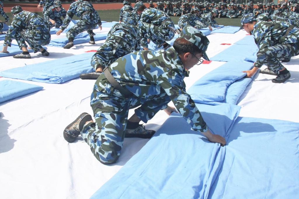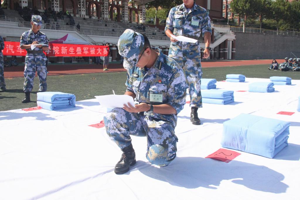 比赛于9月13日下午两点在嘉陵江校区体育场举行,主持人致开场词后比赛正式开始,比赛共分为四组,每组各有10分钟的时间进行被子的整理,比赛刚刚开始,同学就快速进入角色,同学们争分夺秒,仅仅几分钟,军被的大体形状就已完成,但同学们并未仅此满足,同学们精益求精,认真修正边边角角,微小皱褶。经过军训期间每天努力的内务整理练习,想要在短时间内叠好军被,对于hth华体育官网的同学们来说,已经不是一件难事。比比赛特邀各连队教官进行打分评定,最终选出一等奖2人、二等奖4人、三等奖7人和优秀奖9人。