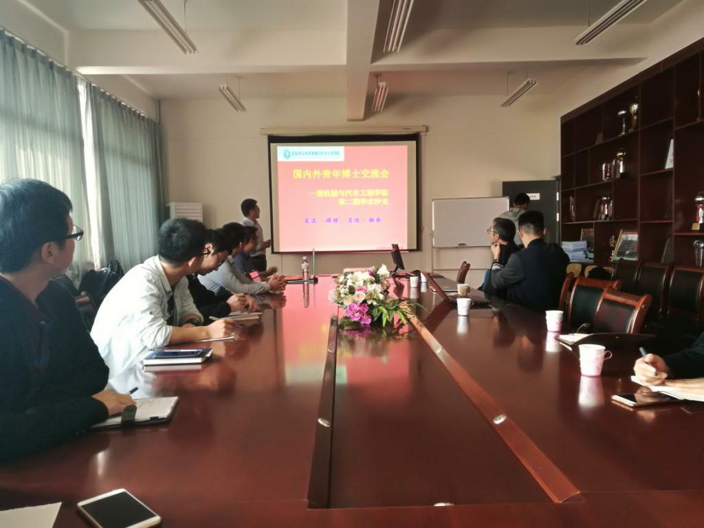 交流会分为三个阶段进行,第一阶段邀请来自哈佛大学的Sheng ZHANG博士、法国特鲁瓦技术大学的张凯博士、香港城市大学的Javad ROSTAMI与Shilong Sun博士以及hth华体育官网的张彦彬博士分别做了题为“Developing micro/nanotechnology with applications in biology, biomimetic and medicine”, “Modeling of initial and induced anisotropies in thermo-elasto-visco-plasticity fully coupled with isotropic ductile damage. Formulation, numerical aspects and applications”, “Uncovered Pipes Inspection with Guided Waves New Signal Processing Method”, “Design of Vibration-based Piezoelectric Energy Harvester”, “Grinding mechanism, force prediction model and experimental validation of vegetable oil based nanofluids minimum quantity lubrication”的精彩纷呈的研究报告;第二阶段为自由交流时间,与会青年博士分别就所在大学情况、研究方向、取得的科研成果以及科研心得等方面进行了深入的沟通和交流。第三个阶段郭峰院长带领海外的4名博士参观了机械装备摩擦学与故障智能监测实验室。