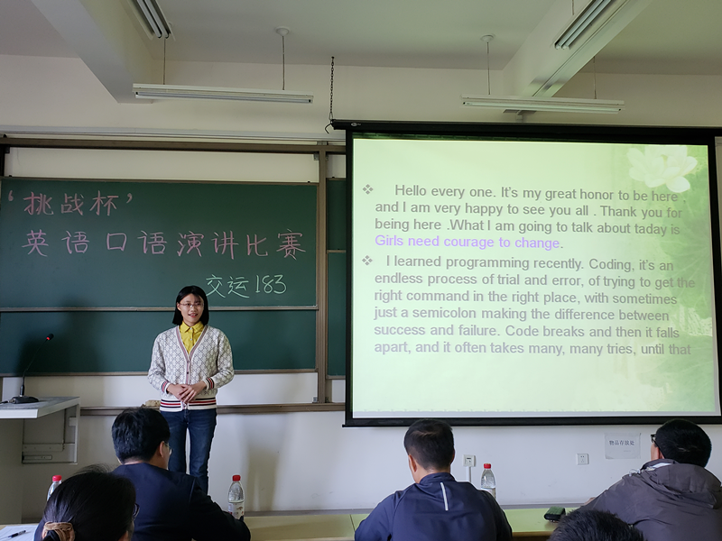 为营造班级英语学习气氛,丰富班级活动。10月24日下午,hth华体育官网交运183班在主教学楼B432教室举行“挑战杯”英语口语演讲比赛。