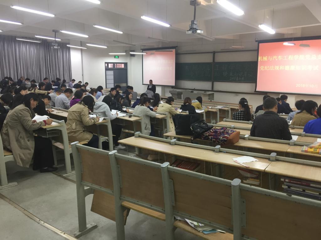 为进一步加深对习近平新时代中国特色社会主义思想的理解与领悟,全面贯彻落实党的十九大精神和十九大新党章的要求,进一步强化党员党性修养,夯实党建工作根基,根据学校《关于做好科级干部和教工党员党纪法规和德廉知识学习测试工作的通知》要求,hth华体育官网党总支于10月24日下午在嘉陵江路校区B125教室组织学院全体教工党员参加党纪法规和德廉知识测试。