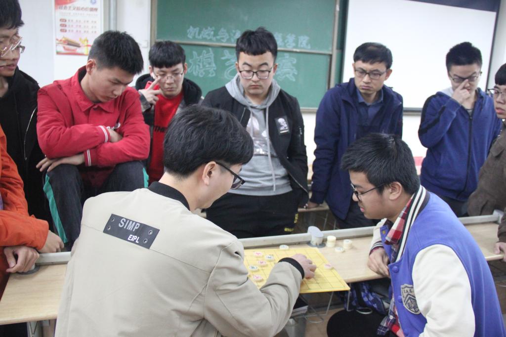 下午两点,比赛正式开始,为了保证比赛的公平和公正,选手通过电脑编排进行分组比赛。本次棋艺大赛分为象棋和围棋两个棋种。象棋比赛采用积分制,由裁判统计对局结果;而围棋的比赛则采用淘汰制,每局比赛的胜者晋级下一轮比赛。在比赛的现场,参赛选手们谨慎行棋,每一步都经过深思熟虑。他们淡定自若,冷静地观察棋盘,分析当前局势,本着“切磋棋艺,以棋会友”的原则,秉承着“友谊第一,比赛第二”的精神,赛出风格,赛出水平。经过一个下午的激烈角逐,最终来自统计171的张亚璇获得象棋比赛冠军,来自经济171的方正浩获得围棋比赛冠军。