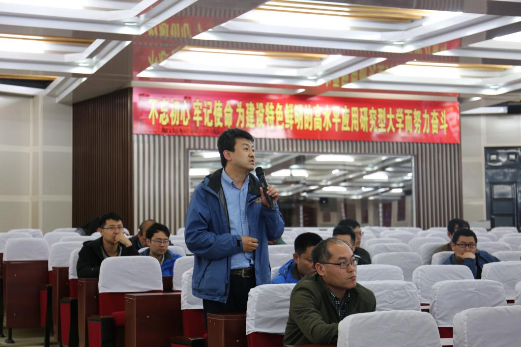 张景德教授首先介绍了目前国家在线开放课程的建设情况,在科技革命和产业变革浪潮的大背景下,高速发展的慕课已成为提高教育质量、推进教育公平的重要战略举措,成为中国高等教育现代化的强大推动力。目前,在线课程数量达到12500门,国家要继续建设两个“一万门”精品课程,即:到2020年,教育部将认定3000门国家精品在线开放课程,再认定7000门线下精品课程,合计推出1万门国家级的一流精品课程;推出1万门线上线下省级一流的精品课程,推动我国高等教育人才培养质量跃上新的台阶。接着,张景德教授从什么是慕课、怎样认识慕课、慕课建设要领、慕课建设要求与设计标准、关于精品课程的认定五大方面做了详细的介绍。报告的最后提问环节,与会教师纷纷就自己在慕课建设过程中遇到的问题与张教授进行了详细的交流。此次报告内容深入浅出,与会教师受益匪浅。