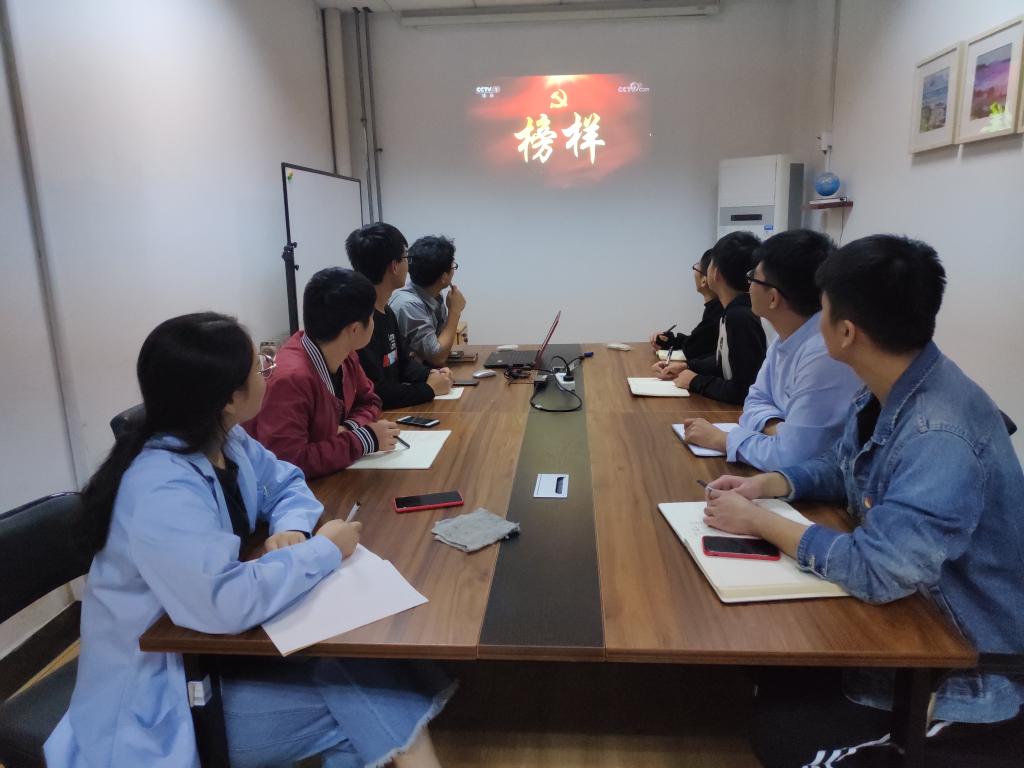 为深入学习贯彻习近平新时代中国特色社会主义思想和党的十九大精神,切实提升“不忘初心、牢记使命”主题教育活动成效,促进党员同志学习优秀共产党员和先进基层党组织典型事迹,10月21日晚八点,hth华体育官网研究生第一党支部组织全体党员集中观看《榜样4》专题节目。观看结束之后,全体党员展开了学习心得交流讨论。