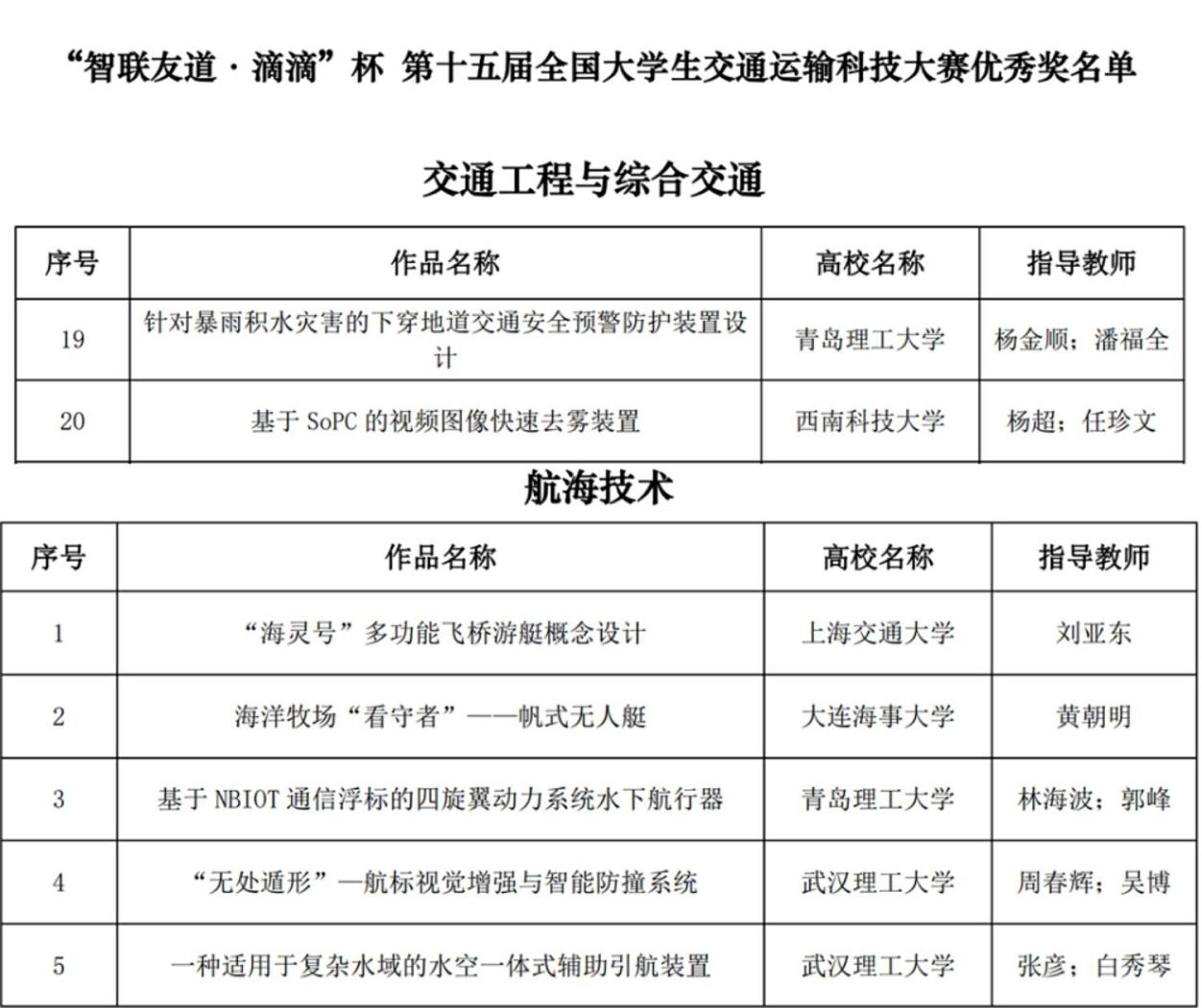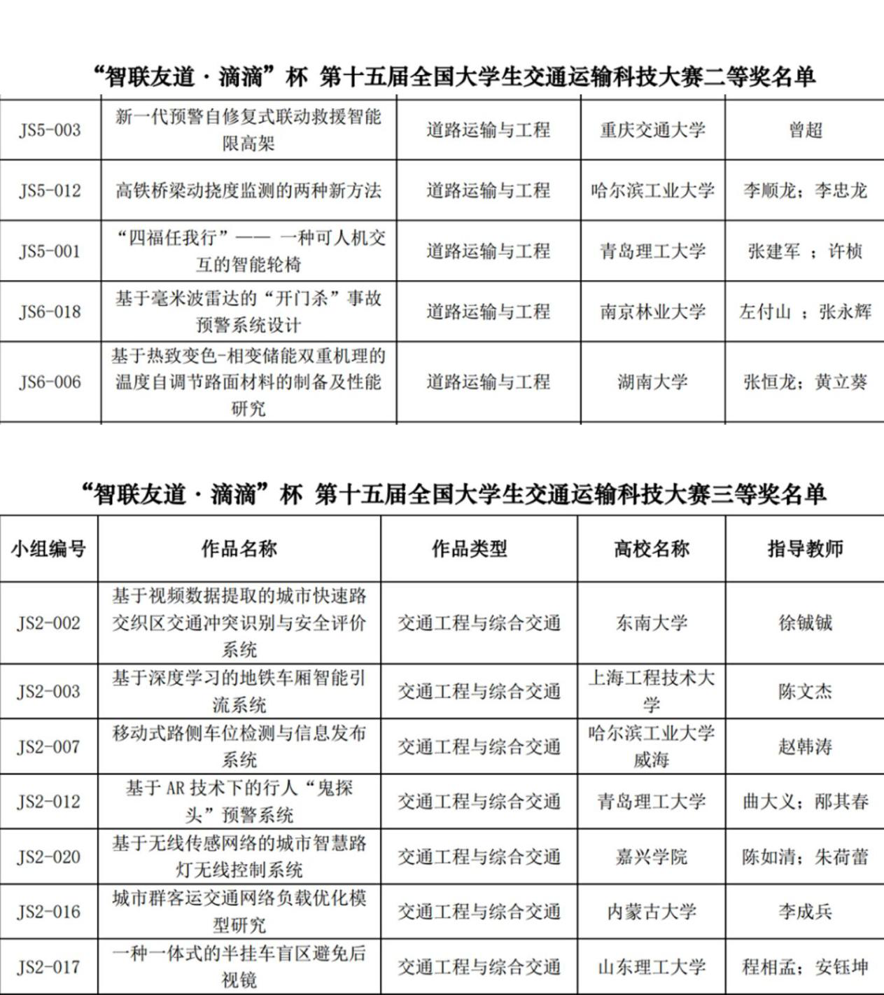 由教育部高等学校交通运输类专业教学指导委员会主办的全国性大学生科技竞赛“智联友道·滴滴”杯第十五届全国大学生交通运输科技大赛于2020年11月28日在北京交通大学举行,hth华体育官网hth华体育官网所派出的参赛队伍共荣获二等奖一项,三等奖一项以及优秀奖两项。本次大赛共有162所高校的656件作品报名参赛。最终来自71所高校的150件作品进入决赛。此次全国大学生交通运输科技大赛根据疫情防控要求,采取“线上答辩展示+线下集中评审”的方式进行。