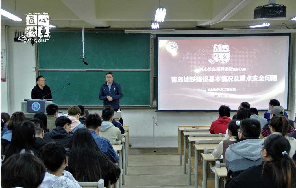4月14日,hth华体育官网邀请青岛地铁1号线总工程师李克先做客匠心机车讲坛,在嘉陵江路校区主教学楼B211教室带来了一场以“青岛地铁建设基本情况及重点安全问题”为主题的讲座。hth华体育官网相关专业老师,2017、2018级本科生及研究生共约200人参加。
