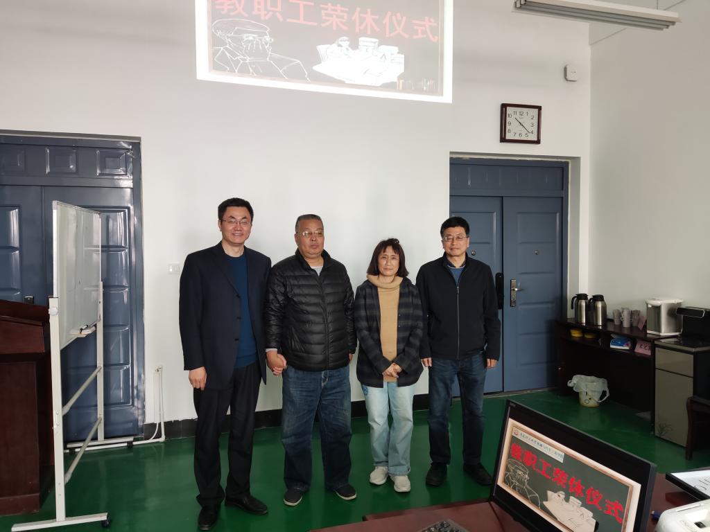 芳菲四月,如诗如画,在这温暖的季节里,hth华体育官网教职工欢聚一堂,以最真挚的情谊欢送王文、杨国海两位老师光荣退休,学院党委书记李忠晓、院长郭峰、工会代表、相关科室教职工参加荣休仪式。