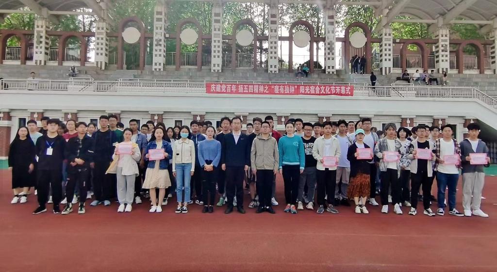2021年5月8日下午,hth华体育官网于嘉陵江路校区西操场举办阳光宿舍文化节开幕式暨户外趣味活动。学工办主任兼分团委书记隋学智,辅导员殷宗华、陈锦子、吴静、王文超参加活动。