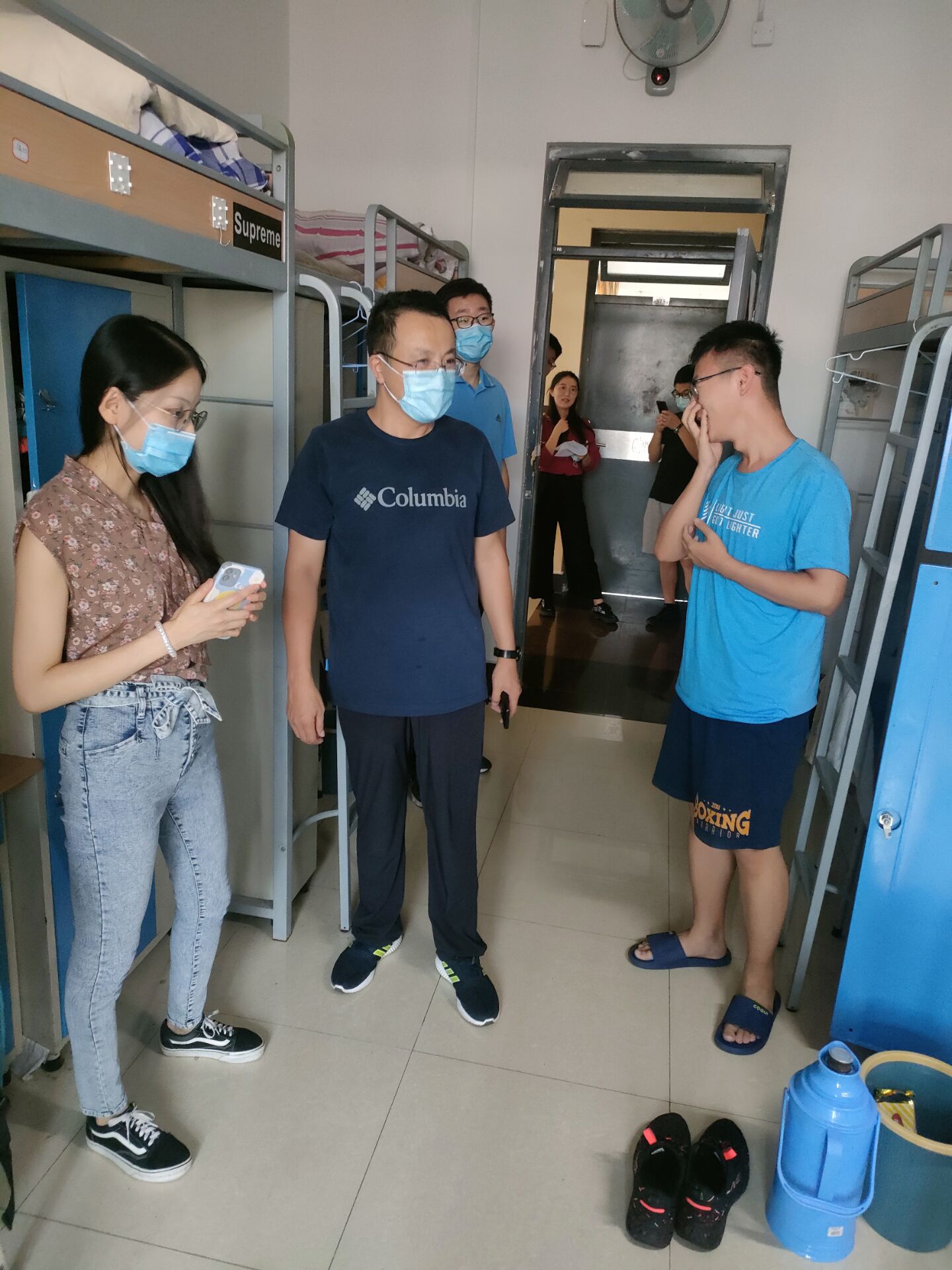 为进一步落实暑假期间学生宿舍安全,增强学生的疫情防控意识,8月3日上午,hth华体育官网党委副书记、副院长董虎带领各年级辅导员检查走访学生宿舍,开展宿舍安全隐患排查,强化暑期留校学生的疫情防控教育。