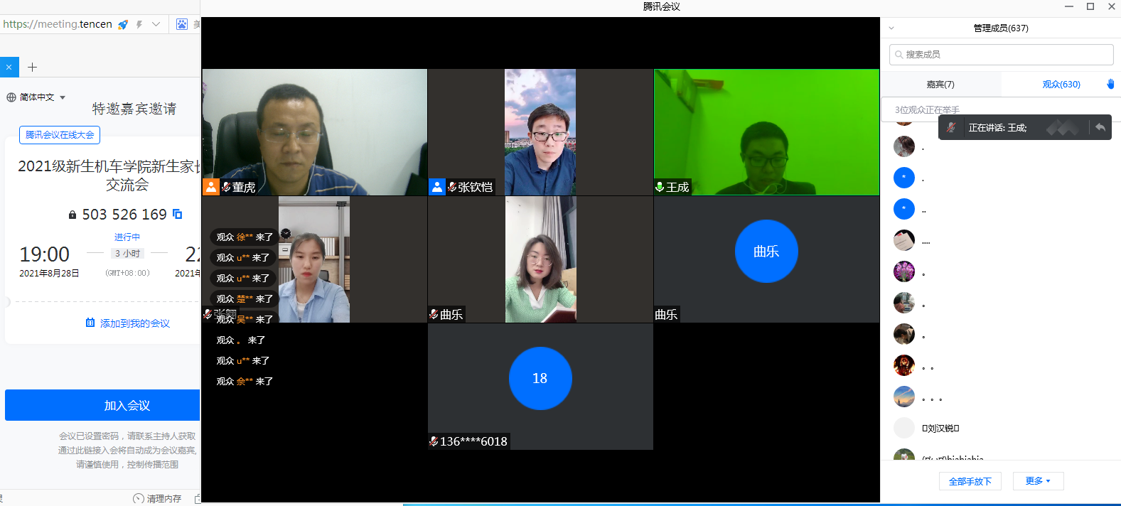 为拓宽家校联动渠道,增强育人合力,加深2021级新生家长对校情院情、人才培养、教育教学、疫情防控等工作的了解,8月28日晚,hth华体育官网一场老师与2021级新生和家长特殊的“见面会”在线上举行。学院党委副书记董虎、学院分团委书记王成,2021级新生辅导员张翱、张钦恺、曲乐及800余名2021级新生和家长参加了这场别样的云端见面会。