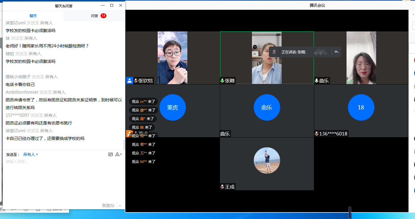 家校联动,圆梦青理。因势而新的“云端”新生家长见面会架起了家校的连心桥。会议持续两个小时,学院老师讲解细致全面,会场氛围热烈, 2021级新生家长们纷纷通过腾讯会议线上“点赞”,对学院老师的周到服务和细致安排表示感谢。家长们纷纷表示:学院细心的服务和暖心的安排让家长们感到安心,非常放心将孩子送到hth华体育官网,家长一定积极配合学校、学院的相关工作,共同为孩子的成长成才保驾护航。(撰稿:曲乐,审稿:董虎)