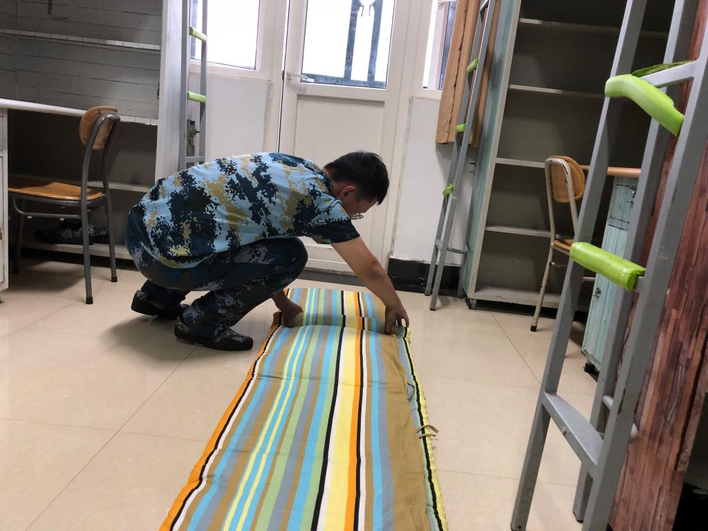 “毛巾统一拿一个衣架挂在脸盆上方的晾衣架上,扫把戳斗统一在灯光开关那里摆放,戳斗前侧与墙角平齐,扫把头高的一侧靠墙,拖把下头与衣柜齐平。”hth华体育官网二营长梁教官事无巨细地交代着,教官强调希望可以通过教授内务整理方式来锻新生的毅力,也让他们在自律生活中收获更多。晚训期间,新生军训教官开展积极开展内务检查以及整理指导工作。将内务培训和检查纳入军训日常训练安排,进一步巩固军训成果,规范学生生活习惯,引导学生树立自律意识,养成良好的生活习惯。