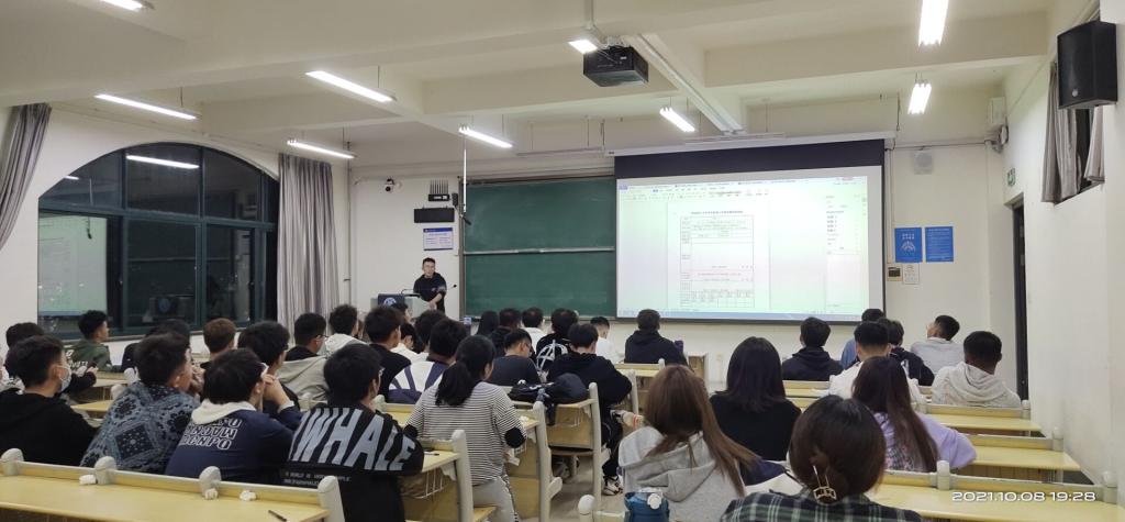 安全192班班长王炎结合班级情况,对家庭经济困难学生认定工作的要求和工作流程做了经验分享,并与现场同学进行互动交流、答疑。