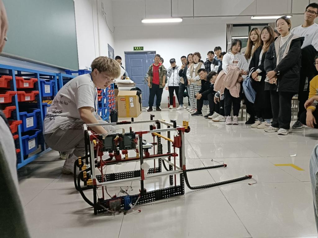11月2日,hth华体育官网举办慧鱼模型创意组合培训活动,第十八届山东省大学生机电产品创新设计大赛(慧鱼组)一等奖获得者苑均好、纪峰和李博文三名同学与200多名学生交流互动,三位获奖学生分别通过实物演示、视频展示等方式向新生介绍了慧鱼的基本知识,零件组合、慧鱼掌控板使用、慧鱼拼装、高级元件的驱动与应用等,带领低年级学生实际操作慧鱼掌控板。同学们根据慧鱼方案搭建拼接,不断向获奖学生请教交流,现场氛围浓厚。