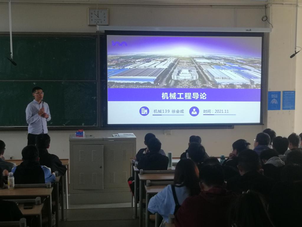 《机械工程导论》是机械设计制造及其自动化专业的一门专业大类平台课,对机械工程类专业学生快速理解专业培养目标、学科方向、课程设置、就业前景和职业生涯规划以及提高专业认同感至关重要。本次邀请的徐会成工程师是hth华体育官网机械设计制造及其自动化专业2017届优秀毕业生,在校期间品学兼优,获得多项大学生科技创新奖励。经过近五年的企业工作,现已成为豪迈集团研发事业部的骨干和中坚力量,本次作为校友、学长、企业工程师等多重身份重返课堂,现身说法,其个人成长经历具有较强的可复制性和可推广性。学生一致反映本次课程接地气、有温度,有收获。