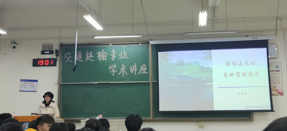 李昕光根据目前热门的自动驾驶技术,作了“面对未来的自动驾驶技术”的专题报告,为大家讲解了目前自动驾驶技术的成果与不足,通过不同品牌车辆的真实上路视频,以及一些交通事故案例,使大家了解到探测技术及导航定位等技术在自动驾驶中的工作原理、应用及优缺点。杨晓霞作了“地铁车站应急管理关键技术研究”和“地铁站内客流分配优化及动态引导微信小程序设计”两个专题报告,从应急管理场景库的建立与计算实验以及支流物检测等方面对学生进行了细致的讲解。