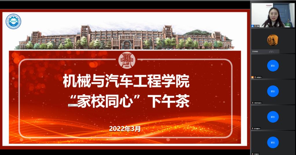 为进一步密切家校联系,凝聚育人合力,积极探索家校协同育人的新形式、新方法,3月21日下午,hth华体育官网举办线上“家校同心”下午茶活动,学院辅导员、班主任与学生家长“面对面”交流,拉家常、谈教育、话成长,将实地家访的“最后一公里”缩短为“零距离”。