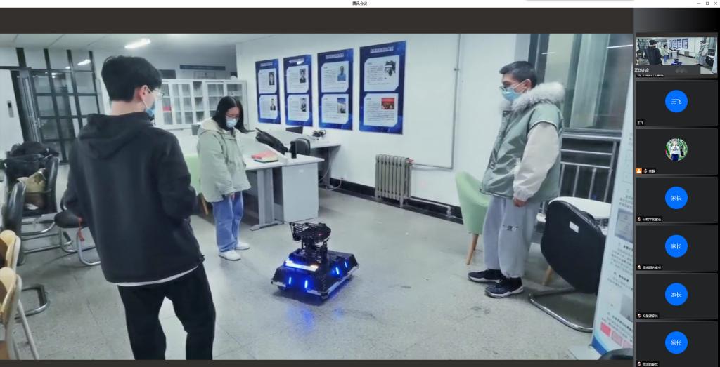 为让家长进一步了解学院专业发展、学科建设等情况,专业课教师王飞老师应邀参加了本次活动。“学院十分重视学生培养,在教育学生学好专业知识的同时,也非常注重培养学生的创新意识与实践能力。这是咱们学院的机器人团队,他们虽然来自不同年级、专业,但团队协作意识非常强。2021年我们参加全国赛,拿到了全国一等奖的好成绩,希望今年继续努力。”一直以来,学院重视学生科技创新能力的培养,优化完善“一心两端三级四阶五步式”大学生创新创业体系,鼓励学生积极参加创新创业实践,在实践锻炼中积累智慧,做到学以致用、用以促学。