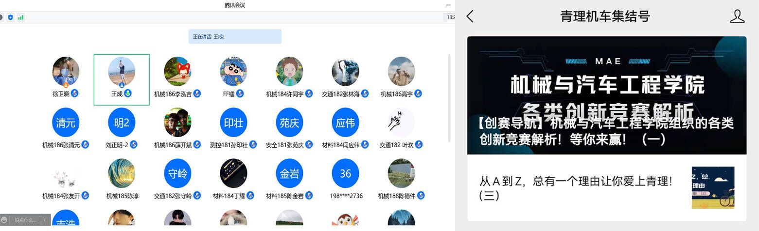 开展云端活动,打破空间限制。3月23日,学院开展山东省机电产品创新设计大赛线上动员会,邀请富有参赛经验的学生分享参赛体会和经验,动员广大学生积极备赛;3月31日,学院通过线上腾讯会议开展“华展物流杯”第十七届全国大学生交通运输科技大赛校赛;4月3日,利用腾讯会议平台举办大学生机械创新设计大赛慧鱼组校赛预赛;4月10日,通过线上腾讯会议开展江苏省大学生交通运输科技大赛校赛。