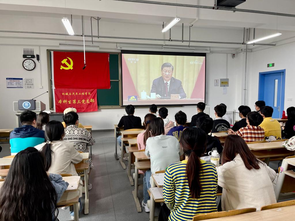 共上一堂微党课,增强党性修养。支部书记通过主题党课,对党员们进行先进思想教育,进一步增强党员党性修养。本科生第三党支部书记曲乐以《志存高远,踔厉奋发,跑出当代青年的最好成绩》为题为学生讲授党课,号召广大党员牢记党的教诲,立志民族复兴,不负韶华,不负时代,不负人民,坚定不移听党话、跟党走,努力成长为堪当民族复兴重任的时代新人,在全面建设社会主义现代化国家新征程上勇当开路先锋、争当事业闯将。在青春的赛道上奋力奔跑,争取跑出当代青年的最好成绩。