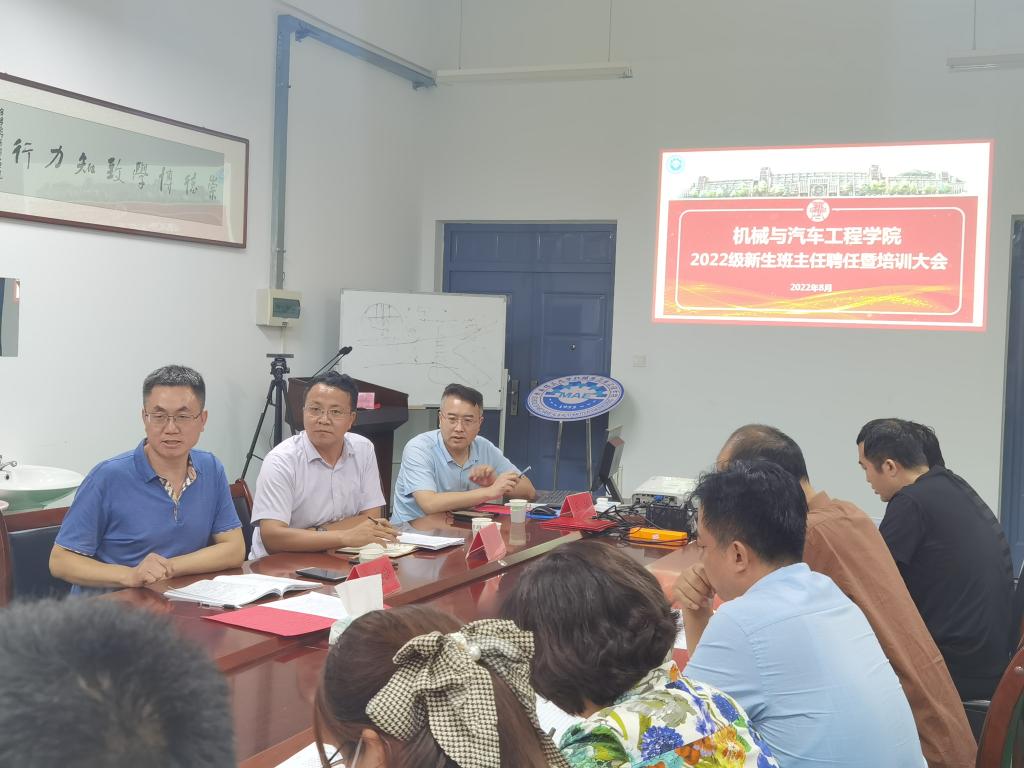 引领遵循,开展新生班主任聘任暨培训大会。8月31日,在汽车实验楼408会议室召开了2022级新生班主任聘任暨培训大会,hth华体育官网党委书记李忠晓、学生工作处副处长王振、全体新生班主任及新生辅导员参加了会议,会议由学院党委副书记董虎主持。会上,董虎宣读了2022级班主任名单并向班主任传达了新生入学报到、新生入学教育相关工作安排;李忠晓书记为2022级新生班主任颁发聘书;王振副处长结合多年班主任工作经验、辅导案例围绕如何增强班级凝聚力、如何培养学生骨干队伍、如何做学生思想上的引路人、如何成为学生的贴心人等方面进行经验分享。他表示,班主任要牢记立德树人的根本任务,提高政治站位,用真心、细心、热心、耐心做好学生教育管理服务工作,努力做学生成长的引路者、陪伴者、助力者。李忠晓书记对班主任提出了三点希望:一是结合新时代学生思想实际,注重加强思想政治教育和咨询服务,帮助新生扣好人生第一粒扣子;二是发挥专业引领作用,坚持加强学风建设,积极创建优良学风班,推进校园精神文明建设。三是加强沟通协调,深化家校联系,争做大学生健康成长的指导者和引路人。他表示,辅导员、班主任是学生学习和生活的领航者、帮助者,要在实际工作中切实做到“用心”、“用情”、“用智”。