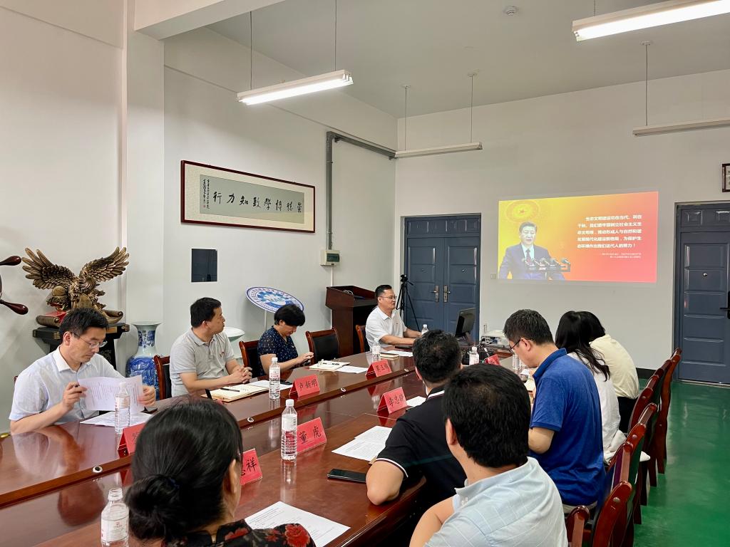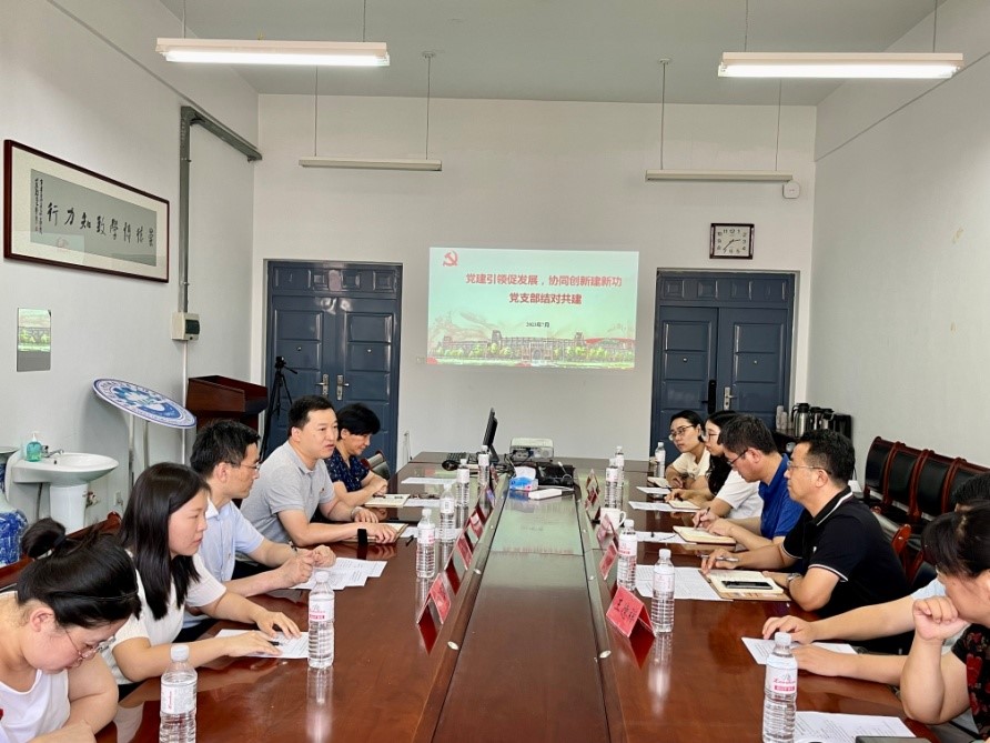 李忠晓对此次两学院党支部开展党建联建活动表示热烈欢迎,介绍了hth华体育官网党组织建设和党建引领内涵建设、基层党建品牌建设与特色打造等情况,强调要围绕深入贯彻落实新时代党的组织路线,通过开展不同学科背景的校内教师党支部联建共建活动,更好地发挥党建引领作用,实现文理融通,推进党建工作与教学、科研等业务工作同频共振。卢新明介绍了人文与外国语学院党组织建设和党员基本情况,希望双方以这次结对联建为契机,充分发挥各自专业优势和党员群众优势,通过党支部联建共建学习经验、相互借鉴、取长补短、共同提高,在服务学校“双高”建设和内涵式高质量发展中贡献学院和英语专业的力量。