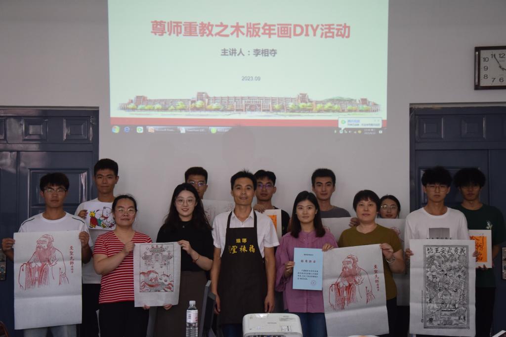 四是举办“尊师重教之木版年画DIY”活动,积极践行社会主义核心价值观。为加强师生互动,弘扬传统文化,9月20日下午,hth华体育官网在汽车实验楼408会议室举办“尊师重教之木版年画DIY”活动,将传统木板年画工艺与师德师风建设结合起来,邀请木板年画传承人李相夺为师生讲授木版年画知识,带领师生体验木版年画的制作过程。学院党委书记李忠晓、二十余名教师和学生参加活动。活动现场,师生参与热情高涨,大家认认真真地看着、学着、做着、讨论着,欢声笑语倾诉着新时代教师及学生对传统民族文化的热爱和对古代人民智慧的崇拜。交通运输专业宋年秀老师表示:“木版年画是独特的永不过时的文化载体,是彰显中华文明的文化符号,体现了劳动人民的智慧、期盼和价值认同,自己要以实际行动,弘扬中华优秀传统文化,竭力做中华优秀传统文化的传承人”。