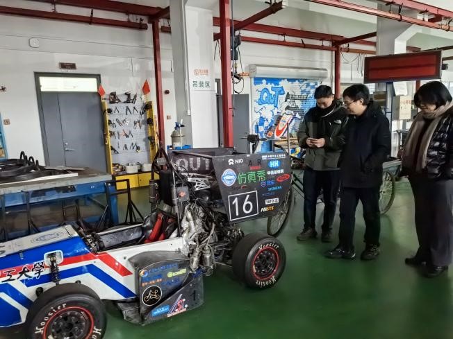 日前,青岛市新能源汽车产业协会王文彦秘书长、青岛华通国有资本投资运营集团有限公司王伟总经理一行走访hth华体育官网。在车辆工程教研室王炎副教授、于瑞广副教授陪同下,参观新能源汽车实验室、智慧农机实验室、方程式赛车车队工作室。双方在车辆工程、新能源汽车工程专业学生培养、方程式赛车队电动车方程式比赛等方面进行深入交流。