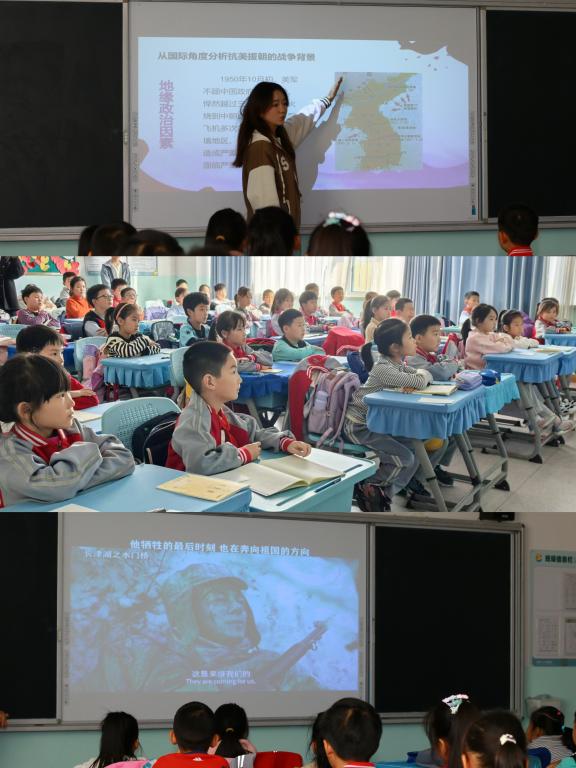 为纪念中国人民志愿军抗美援朝出征作战74周年,引导学生铭记历史,缅怀先烈,激发爱国情怀。hth华体育官网开展“铭记抗美援朝 传承红色精神”主题系列活动,探望抗美援朝老兵,为小学生讲述抗美援朝故事。