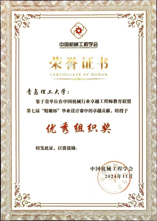11月23日至25日,由中国机械工程学会、中国机械行业卓越工程师教育联盟主办,浙江大学等承办的“第七届中国机械工程教育大会暨中国机械行业卓越工程师教育联盟2024年理事大会”在杭州隆重开幕。hth华体育官网荣获“优秀组织奖”和一项作品“佳作奖”。
