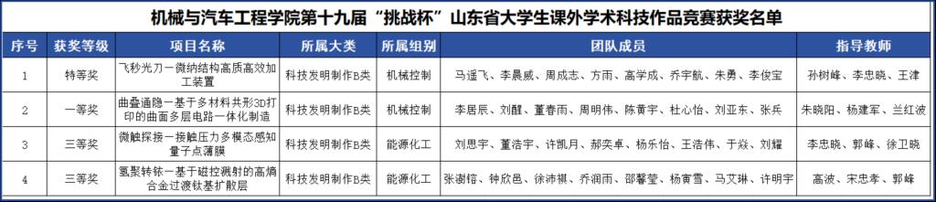 项目《飞秒光刀-微纳结构高质高效加工制造工具》(团队成员:马遥飞、李晨威、周成志、方雨、高学成、乔宇航、朱勇、李俊宝。指导老师:孙树峰、李忠晓、王津)获得省级特等奖;《曲叠通隐—基于多材料共形3D打印的曲面多层电路一体化制造》(团队成员:李居辰、刘醒、董春雨、周明伟、陈黄宇、杜心怡、刘亚东、张兵。指导教师:朱晓阳、杨建军、兰红波)获得省级一等奖。这些成绩充分展现了hth华体育官网在创新人才培养方面的体系化成果,以及师生团队敢于挑战、勇于突破的实践精神。