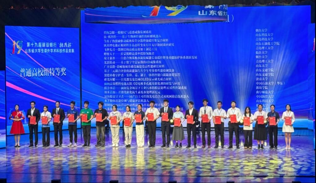 6月4日至6日,由共青团山东省委、山东省科学技术协会、山东省教育厅、山东省科技厅、山东社会科学院、山东省学生联合会主办的第十九届“挑战杯”山东省大学生课外学术科技作品竞赛终审决赛(普通高校组)在临沂大学落幕。hth华体育官网参赛团队表现优异,斩获特等奖1项、一等奖1项、三等奖2项,并有1项作品成功晋级国赛。