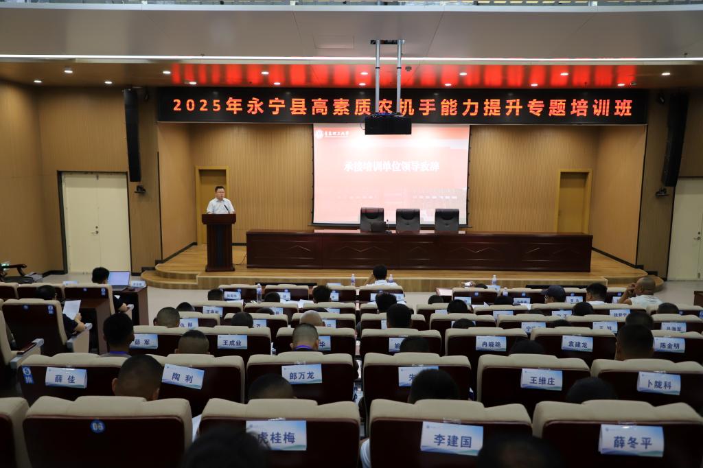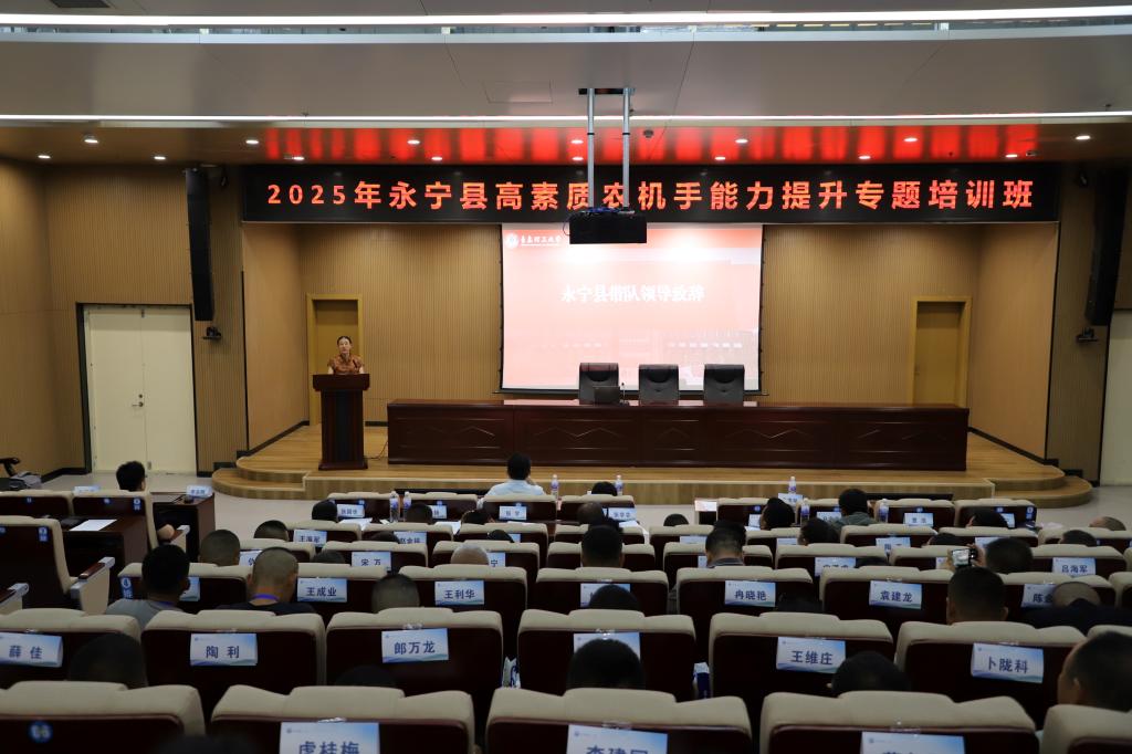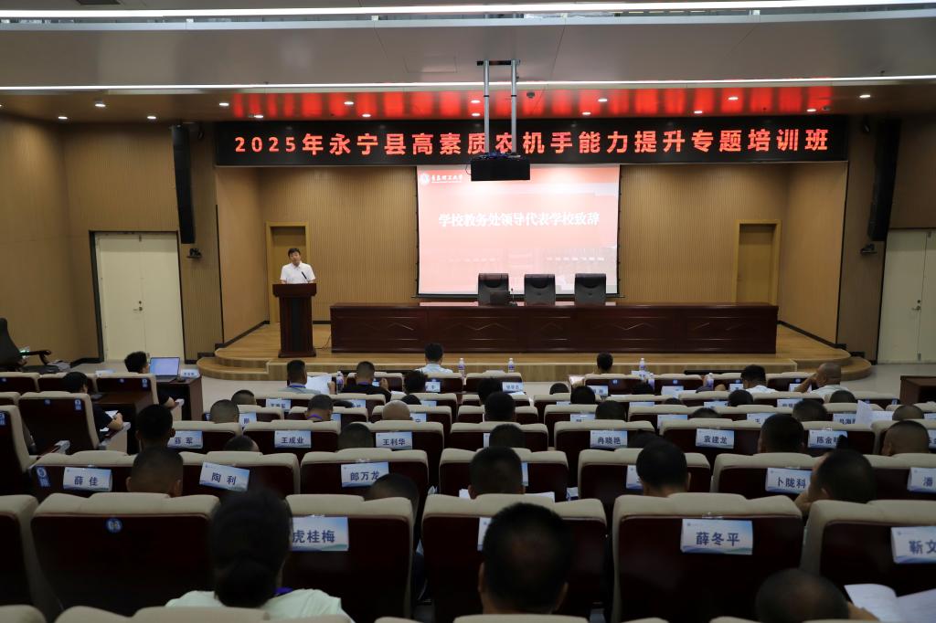 为认真贯彻落实习近平总书记关于乡村人才振兴的重要指示,提升农民技术技能水平、产业发展能力和综合素养,8月20日,由永宁县农业农村局主办、hth华体育官网承办的2025年高素质农机手能力提升专题培训班成功举办。hth华体育官网教务处副处长张立伟,hth华体育官网副院长杨发展、郭阳,永宁县农业机械安全监理站工程师吕爱琴,以及培训讲师代表与参训学员共同参加了此次开班仪式,开班仪式由郭阳主持。